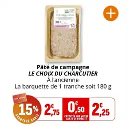 | Pâté de campagne le choix du charcutier 180 g | Coccimarket | 2,75 € | 2,25 € | -15% | 28 janvier 2026 | 08 février 2026 | |