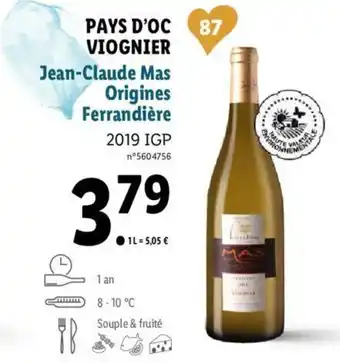 | Pays D'Oc Viognier Jean-Claude Mas Origines | Lidl | 3,79 € | 10 mars 2021 | 16 mars 2021 |