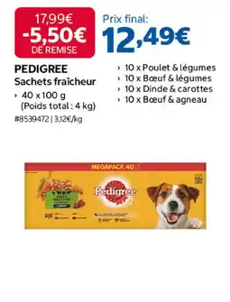 | 1 | Pedigree sachets fraîcheur 4 kg | Costco | 17,99 € | 12,49 € | 5,50 € Réduction | 16 mars 2026 | 12 avril 2026 | Voir l'offre | |