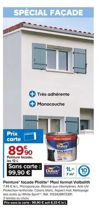 | Dulux valentine peinture* façade pliolite® maxi format valbalith | Castorama | 99,90 € | 89,90 € | 10,00 € Réduction | 11 juillet 2023 | 31 juillet 2023 | |