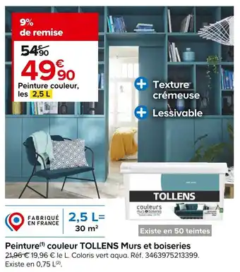 | Tollens peinture couleur mise en teinte | Castorama | 39,90 € | 29,90 € | 10,00 € Réduction | 07 novembre 2023 | 27 novembre 2023 | |