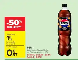 | 1 | PEPSI 1,5 l | Carrefour | 1,75 € | 0,87 € | 0,88 € Réduction | 21 avril 2026 | 04 mai 2026 | Voir l'offre | |