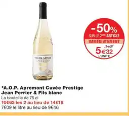 | A.O.P. Apremont Cuvée Prestige Jean Perrier & Fils blanc 75 cl | Monoprix | 7,09 € | 5,32 € | -50% SUR LE 2ÈME | 01 janvier 2026 | 18 janvier 2026 | |