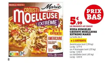 | Pizza crousti moelleuse royale surgelée marie | Super U | 6,99 € | 04 juillet 2023 | 16 juillet 2023 | |||