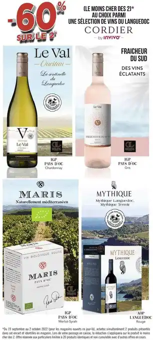 | Cordier bon plan sur une sélection de vins du languedoc cordier | Géant Casino | 19 septembre 2022 | 02 octobre 2022 | ||||