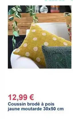 Décor Discount Coussin brodé à pois jaune moutarde offre