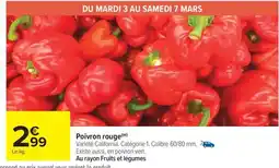| Poivron corne de bœuf vert ou rouge 1 kg | Carrefour | 3,59 € | 17 février 2026 | 02 mars 2026 | |||