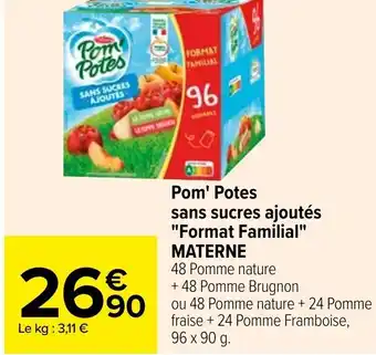 | Pom' Potes sans sucres ajoutés Format Familial MATERNE | Carrefour | 6,89 € | 3,44 € | 3,45 € Réduction | 09 janvier 2024 | 22 janvier 2024 | |