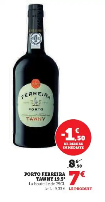 | Porto ferreira tawny 19.5 | Super U | 8,75 € | 7,25 € | 1,50 € Réduction | 06 juin 2023 | 18 juin 2023 | |