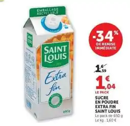 | SAINT LOUIS Sucre en poudre 650 g | Hyper U | 1,49 € | 0,97 € | -30% de remise | 21 janvier 2025 | 02 février 2025 | |