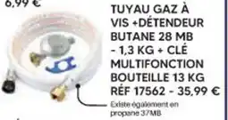 Shopix TUYAU GAZ À VIS+DÉTENDEUR BUTANE 28 MB + CLÉ MULTIFONCTION BOUTEILLE 13 KG offre
