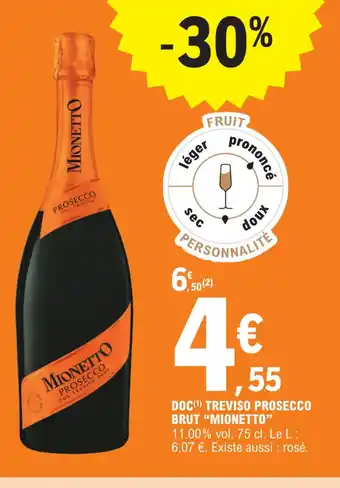 | MIONETTO Doc treviso prosecco brut 75 cl | E.Leclerc | 6,50 € | 4,55 € | -30% | 10 juin 2025 | 21 juin 2025 | |