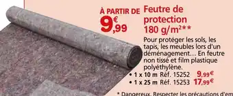 | Feutre de protection 180 g/m²** | Provence Outillage | 9,99 € | 03 juin 2024 | 31 août 2024 | |||