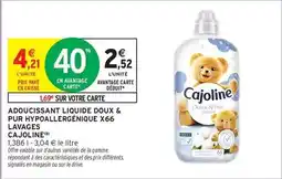 | 1 | Cajoline - adoucissant liquide doux & pur hypoallergénique x66 lavages | Intermarché Express | 4,21 € | 08 avril 2026 | 19 avril 2026 | Voir l'offre | |||