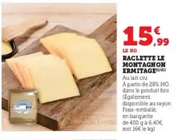 | ERMITAGE Raclette le montagnon 1 kg | Hyper U | 15,99 € | 20 janvier 2026 | 01 février 2026 | |||