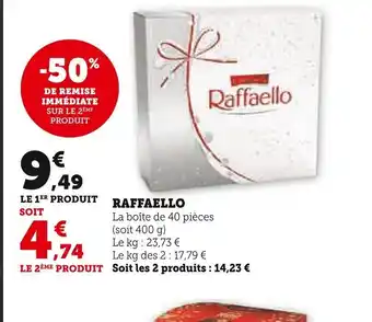 | -50% de remise immédiate sur le 2ème produit identiquesur la gamme raffaello | Super U | 28 novembre 2022 | 10 décembre 2022 | ||||