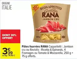 | 6 | RANA Cappelletti jambon cru | Auchan | 8,97 € | 5,98 € | 2+1 Offert | 10 février 2026 | 22 février 2026 | Voir l'offre | |