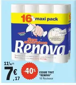 | Essuie-tout "RENOVA ACTIVE ABSORPTION" | E.Leclerc | 11,69 € | 8,18 € | 3,51 € Réduction | 14 février 2023 | 25 février 2023 | |