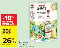 | 2 | Rhum blanc old nick 2 l | Carrefour Market | 29,95 € | 26,95 € | -10% DE REMISE | 28 avril 2026 | 10 mai 2026 | Voir l'offre | |