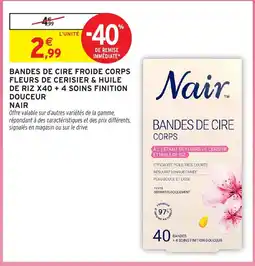 Intermarché Hyper Nair Bandes de cire froide corps fleurs de cerisier & huile de riz x40 + 4 soins finition douceur offre