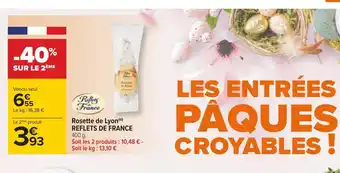 | Reflets de france rosette de lyon | Carrefour | 6,51 € | 3,91 € | 2,60 € Réduction | 19 juillet 2022 | 25 juillet 2022 | |