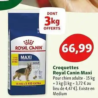 | Royal Canin Maxi Croquettes | Maxi Zoo | 69,99 € | 28 janvier 2025 | 05 février 2025 | |||