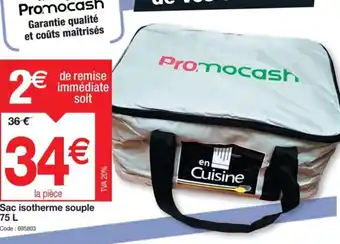 | Sac isotherme souple 90 litres | Promocash | 35,99 € | 09 décembre 2025 | 13 décembre 2025 | |||