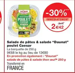 | 2 | DAUNAT Salade de pâtes & salade poulet Caesar 250 g | Monoprix | 3,45 € | 2,42 € | -30% | 24 mars 2026 | 06 avril 2026 | Voir l'offre | |