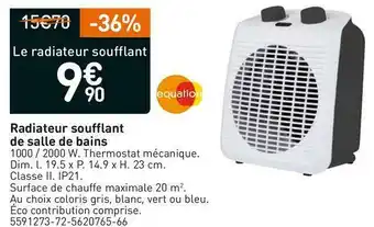 | Equation radiateur soufflant de salle de bains | Weldom | 15,70 € | 9,90 € | 5,80 € Réduction | 01 décembre 2021 | 25 décembre 2021 |