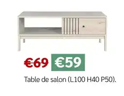 | 2 | Table de salon | Meubles Crack | 69,00 € | 59,00 € | 10,00 € Réduction | 03 janvier 2026 | 31 janvier 2026 | Voir l'offre | |