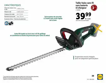 | Taille-haies sans fil | Lidl | 24,99 € | 21 avril 2025 | 24 avril 2025 | |||