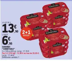 | 1 | CONNÉTABLE Sardines 1.215 kg | E.Leclerc | 20,85 € | 13,90 € | 2+1 Offert | 03 février 2026 | 14 février 2026 | Voir l'offre | |