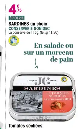 | JACQUES GONIDEC Sardines à l'huile d'olive vierge extra Jacques 115 g | Les Comptoirs de la Bio | 4,58 € | 3,60 € | 0,98 € Réduction | 25 mars 2026 | 04 avril 2026 | |