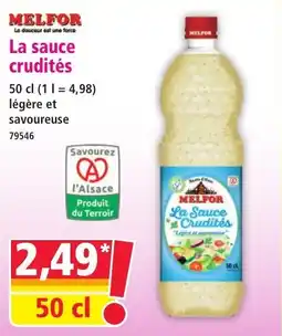 | MELFOR Sauce crudités 50 cl | Norma | 2,49 € | 25 juin 2025 | 02 juillet 2025 | |||