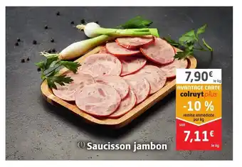 | Saucisson Jambon | Colruyt | 7,90 € | 7,11 € | 0,79 € Réduction | 17 novembre 2021 | 28 novembre 2021 | |