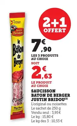 | Saucisson baton de berger justin bridou 250 g | Maximarché | 7,90 € | 2,63 € | 2+1 offert | 27 décembre 2025 | 04 janvier 2026 | |