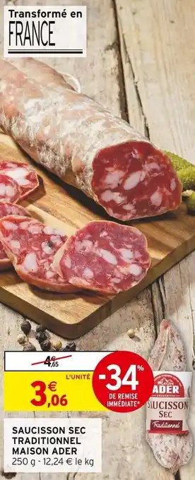 | SAUCISSON SEC TRADITIONNEL MAISON ADER | Intermarché | 4,95 € | 3,06 € | 1,89 € Réduction | 24 avril 2023 | 30 avril 2023 | |
