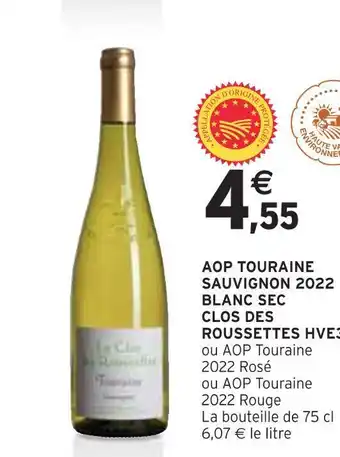 | Touraine sauvignon aop 2022 blanc sec clos des roussettes hve3 | Intermarché | 4,55 € | 30 mai 2023 | 11 juin 2023 | |||