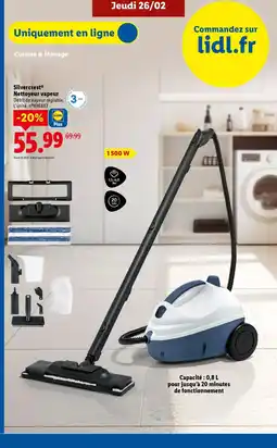 | SILVERCREST Nettoyeur vapeur | Lidl | 69,99 € | 55,99 € | -20% | 26 février 2026 | 04 mars 2026 | |