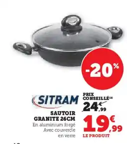 | 5 | Sautoir granite sitram 26 cm | Super U | 24,99 € | 19,99 € | -20% | 03 février 2026 | 15 février 2026 | Voir l'offre |