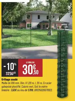 | Grillage soudé - Vert - 1,2x25m | Bricorama | 99,00 € | 88,90 € | 10,10 € Réduction | 28 février 2024 | 29 avril 2024 | |