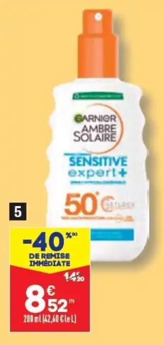 | Garnier spray solaire | ALDI | 14,20 € | 8,52 € | 5,68 € Réduction | 24 avril 2023 | 30 avril 2023 | |