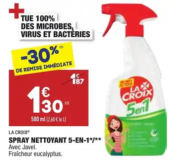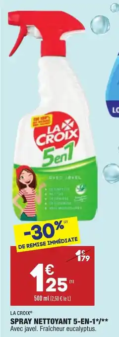 | LA CROIX SPRAY NETTOYANT JAVEL 5 EN 1 | ALDI | 1,99 € | 1,39 € | 0,60 € Réduction | 29 avril 2024 | 06 mai 2024 | |