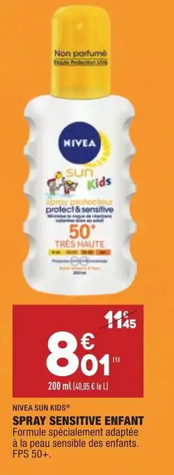 | SPRAY SOLAIRE ENFANT✪ SPF 50. | ALDI | 11,99 € | 8,39 € | 3,60 € Réduction | 14 mai 2024 | 20 mai 2024 | |