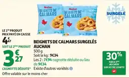 | Beignets de calmars surgelés auchan 500 g | Auchan | 4,67 € | 3,27 € | -30% SUR LE 2EME | 21 avril 2026 | 02 mai 2026 | |