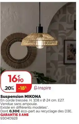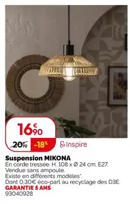 | Inspire Suspension Mikona | Weldom | 39,90 € | 32,90 € | 7,00 € Réduction | 04 février 2025 | 11 mars 2025 | |