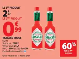 | MCLLHENNY Tabasco rouge 60 ml | Monoprix | 3,39 € | 2,38 € | 1,01 € Réduction | 21 octobre 2025 | 02 novembre 2025 | |