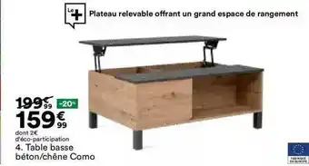 BUT Table basse Como béton/chêne offreTable basse Como béton/chêneBUT199,99 €169,99 €30,00 € Réduction27 octobre 202501 janvier 2026
