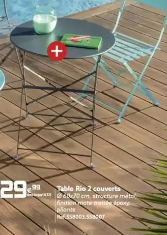 | Table oslow 2 couverts | Gifi | 69,90 € | 07 avril 2025 | 05 mai 2025 | |||