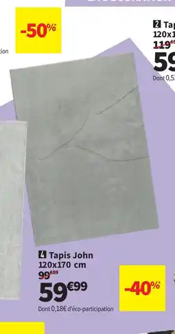 Conforama Tapis John offreTapis John 120 x 170 cmConforama99,99 €59,99 €-40%09 décembre 202525 décembre 2025